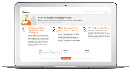 Cohort Go Payments converts your payments at foreign exchange rates usually only available to large corporations and we pass these savings on to you. Payments can be made to any education, insurance, accommodation or other international education service provider or to your own bank account* for living expenses. Not only that, we do not charge any fees.